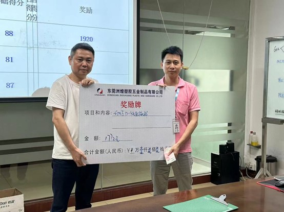 根据各改善小组改善成果来进行评分,何总为各改善小组颁发奖金。